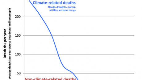 Inverse Hockey-Stick: climate related death risk for an individuals down 99% since 1920