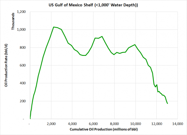 oil production rate vs cumulative oil production (David Middleton, data from BOEM).
