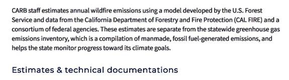 With respect to the states greenhouse gas emissions CARB notes that wildfire emissions are not included in its inventory for measuring emission reductions but are dealt with apart from the other tracked emission inventories.