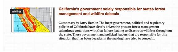 The state government and its political leaders have failed to deal competently with the management of both forest community development and forest management policies with this failure having led to increasing both the risks and occurrences of extreme wildfires throughout the state as presented in a recent WUWT article noted below.