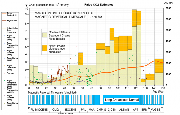 The assumption that mid-late Cretaceous warmth and sea level rise were due to high atmospheric CO2 levels and that the high CO2 levels can be directly related to increased volcanic activity are what’s wrong with it. This is geology done bass-ackwards. It’s an unfortunate blemish on an otherwise outstanding article. And, unfortunately, I think it reflects a shift from Chamberlin’s Method of Multiple Working Hypotheses toward paradigm-driven geological thinking among many academic geoscientists.