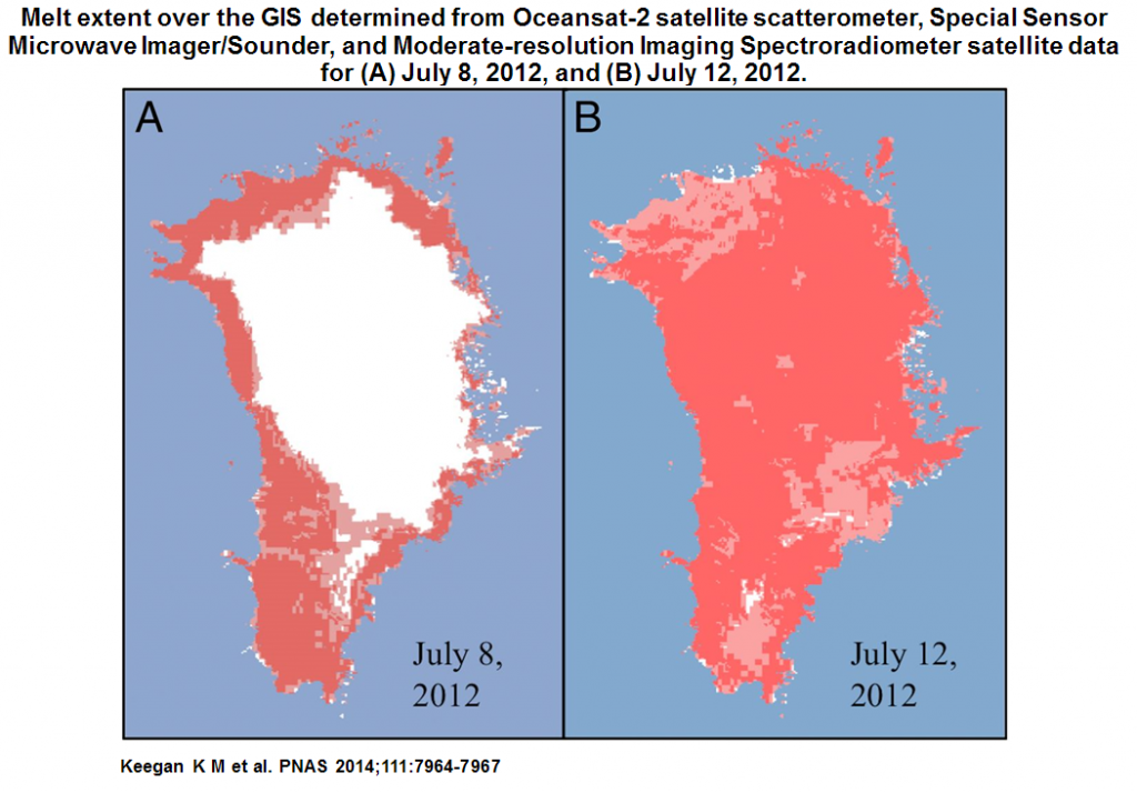 In fact. we’d not even know about the melting in Greenland before satellites came on the scene. So how many times in the history of the Earth has Greenland has a quick melt spike? I’m guessing hundreds of thousands of times.