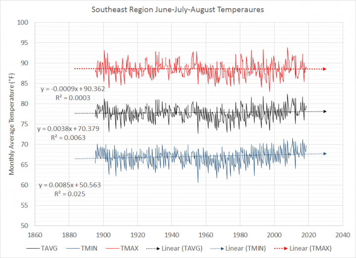 I hope you didn’t choose the SE US region just because it showed the lowest increase. Why not show the long-term trend in another similar sized slice that has experienced a strong warming signal?