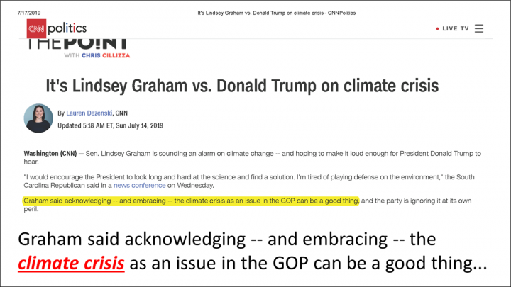 And you are lying (fake news)… Senator Graham never mentioned the “climate crisis”.