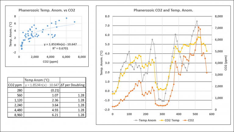 Secondly, for any of this to make sense, you have to accept the real probability that each doubling of atmospheric CO2 increases the bulk temperature of the atmosphere by anywhere from 0.5 to 1.5 °C and that a rapid rise of atmospheric CO2 beyond 1,000 ppmv could yield some unpredictable changes in marine geochemistry. Clearly a doubling of the assumed pre-industrial CO2 concentration of 280 ppmv, will not lead to a climate crisis, catastrophe or emergency… But, could a tripling or quadrupling of that 280 ppmv pose a potential problem in a couple of hundred years? Maybe.