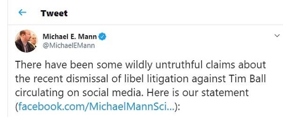 “There have been some wildly untruthful claims about the recent dismissal of libel litigation against Tim Ball circulating on social media. Here is our statement: