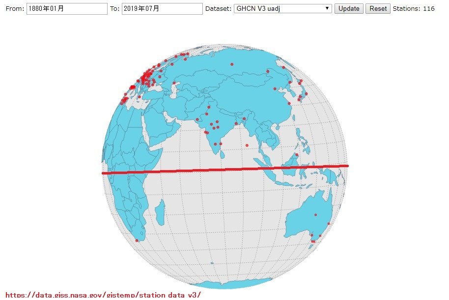 Graphic showing thermometer stations in southern hemisphere 1880-2019