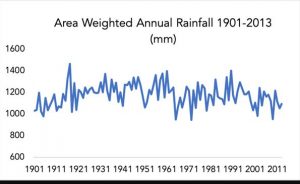Fig: Annual Rainfall (mm) between 1901 and 2013.