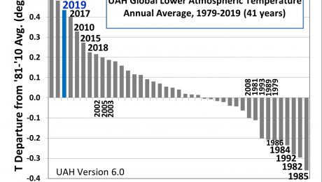 Reposted from Dr. Roy Spencer’s blog December 6th, 2019 by Roy W. Spencer, Ph. D. People’s Climate March in Denver, CO on April 29, 2017 (CNN). It’s that time of … Continue reading 2019 the Third Least-Chilly in the Satellite Temperature Record