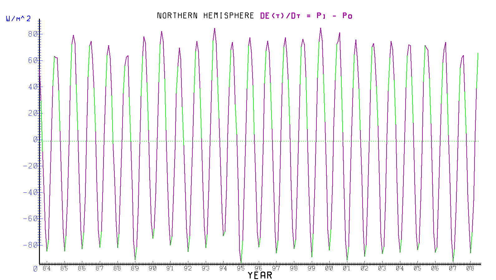 Note that the seasonal imbalance per hemisphere varies between emitting up to 80 W/m^2 too much in the winter while up to 80 W/m^2 too little are emitted in the summer. When you subtract one big number from another big number and the difference is less than the uncertainty in the 2 large numbers, the net ‘imbalance’ is meaningless. In this case, we actually have 4 big numbers, 2 per hemisphere.