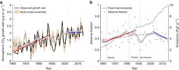 There are consensus papers that discuss this growing discrepancy between the emissions and the growth in the atmosphere (declining airborne fraction).