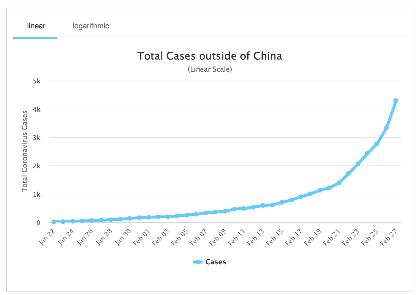 That chart is dominated by the Chinese figures. China had to shut down a significant portion of their economy to do that. Need to look at infection rate ex-China to get a sense about current spread in ROW. It’s still pretty close to exponential, but I can’t figure out how to include an image like you did above.