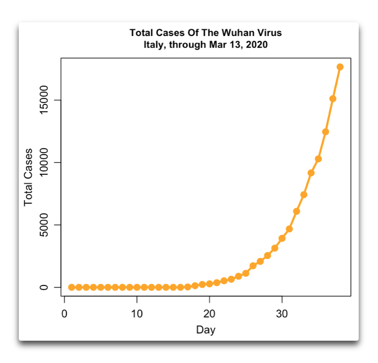 Yeah, 250 deaths yesterday alone in Italy. Actual cases,of infection as opposed to certified cases, must be much higher – probably 35,000 plus judging by the death toll so far, though that’s higher than it would otherwise be because the healthcare system has been so overwhelmed.