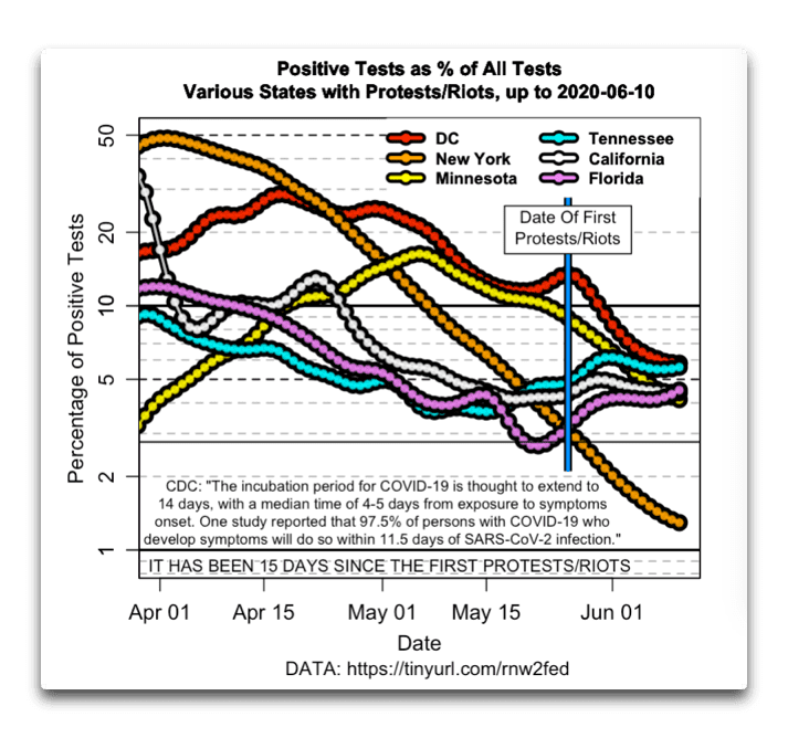 But now, there is even more compelling and powerful evidence of the lack of COVID threat in outside air, even in a worse-case situation: the lack of surge in COVID cases following the large protests in Seattle and other cities.