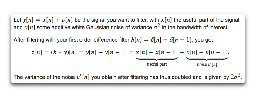 https://dsp.stackexchange.com/questions/55361/proof-that-first-difference-filter-amplifies-noise