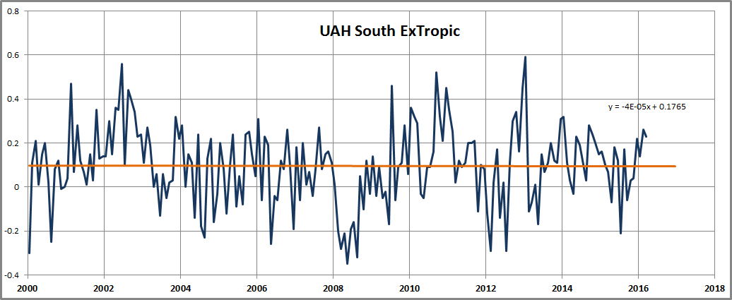 The 1998 and 2015/2016 El Nino’s were so similar that a trend line from 1998 to 2016 would be okay, not that a short term linear trend ever fairly describes long term non linear climate trends.