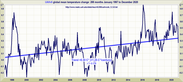ALL the data show 2020 to have been close to another hottest in the record year – just behind 2016. But no, lets ignore that, lets even ignore the relentless oceanic warming where nearly all the energy is going and instead count how many angels can dance on the end of a pause. A so-called pause that is nothing but a scrap of statistically insignificant, cherry-picked noise.