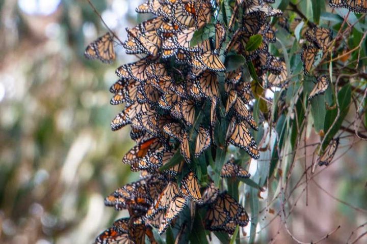 In the 1970s scientists discovered virtually all monarchs breeding east of the Rocky Mountains migrate to extremely small patches of high mountain forests in central Mexico. When that critical wintering habitat was logged, it opened the forest canopies removing its insulating effects. In January 2002, a storm brought cold rains followed by clear skies. Without the clouds’ greenhouse effect, or an insulating forest canopy, temperatures plummeted to 23°F (- 4°C). Millions of damp butterflies froze in place. Many millions more fell creating an eerie carpet of dead and dying butterflies several inches deep. Distraught researchers calculated 500 million butterflies died that winter, wiping out 80% of the entire eastern population. Similar cold events happened in 2004, 2010 and 2016.
