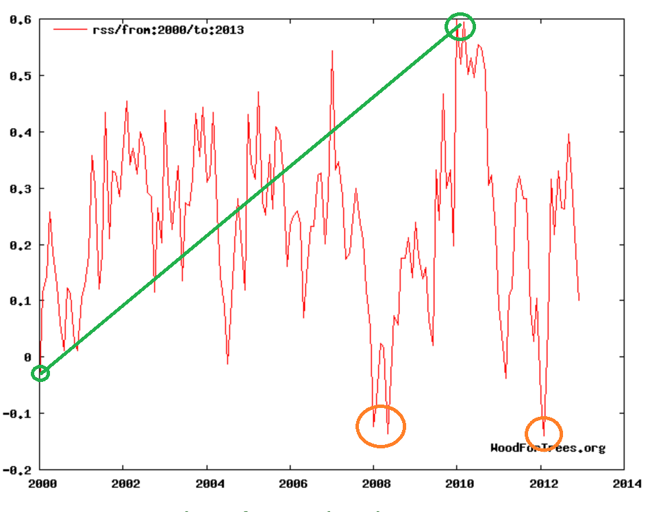 The chart only goes through 1999, but the year 1998, which is on this chart, shows to be 0.5C cooler than 1934, and the year 2016, the so-called “hottest year evah!” is statisticlly tied with 1998 for the hottest year since the 1930’s, so that makes 1934 hotter than 2016, too, and the US is therefore in a temperature downtrend, not a temperature uptrend. The same holds true for the rest of the world.