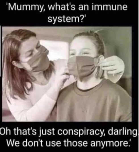 These mask geniuses are ruining their immune system, while overpopulationists and cult of death cheer on the stupidity.