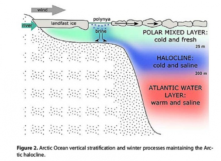 Recent wind‑driven increases in the volume of intruding Atlantic water (as well as intruding Pacific water) have melted more Arctic sea ice. Without ice, more heat ventilates and raises Arctic air temperatures. Increased heat ventilation due to reduced sea ice can also be driven solely by changes in the prevailing wind direction that pushes more ice cover out of the Arctic to melt in the warmer Atlantic. The good news is less ice benefits the Arctic food chains. The loss of sea ice has increased photosynthesis and boosted the productivity of the Arctic Ocean food web 3‑fold.