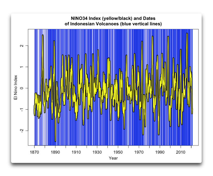 In practical terms for what I wanted to do, there’s no difference between the two. This was very good news, since the NINO34 index goes back to 1870.