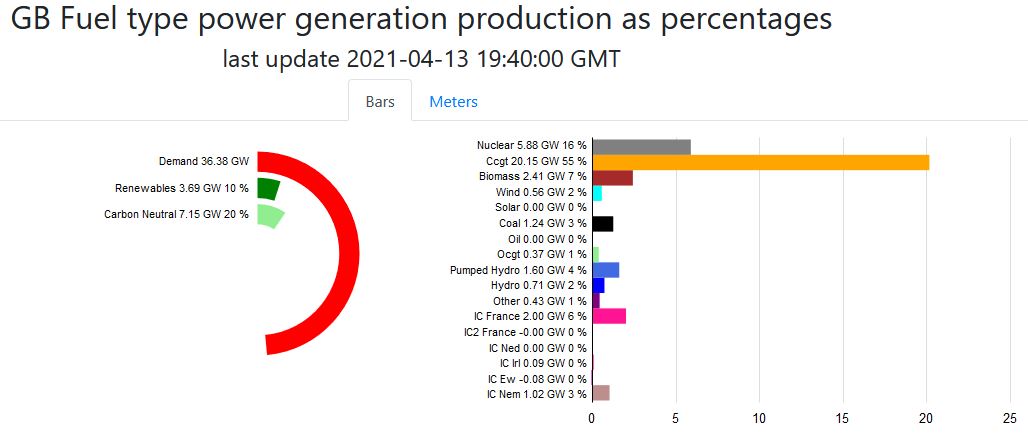 Of the total installed windfarm capacity in the UK of 25 GW, this morning it is only capable of producing 1.5 GW.