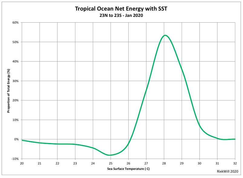 You can never have ocean WATER surface cooler than -2C. And it only ever gets over 30C briefly before convergence sets in – per the data from the moored buoy at 0N 156W in the Pacific or any other tropical ocean.