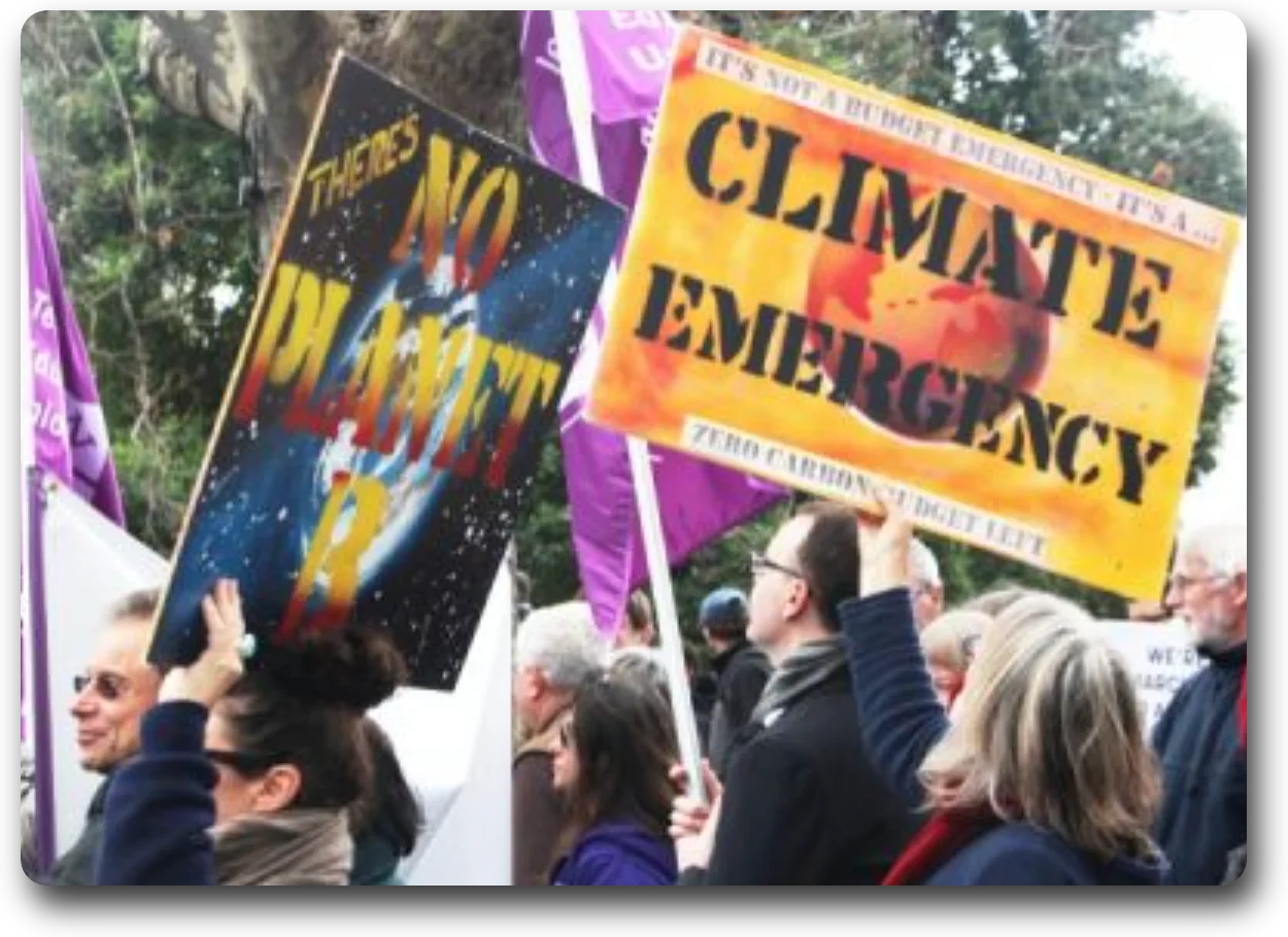 My god man, open your eyes. The climate crisis is all around us. Every morning when the sun comes up it gets warmer. You can see CO² floating around every where. There are dead and dieing polar bears littering the streets. Ice melts when I take it out of the freezer. Tesla batteries burst into flames from the heat. Greta is sad.