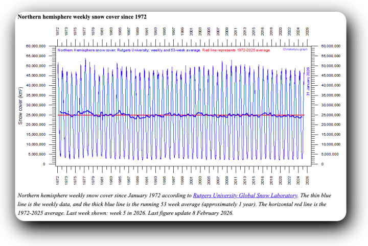 And here is the Rutgers Snow Labatory’s snow extent data from 1972 to February 2026 … basically, no change.