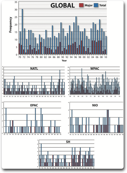 Here are all the records of landfalling hurricanes worldwide. This shows Global, North Atlantic (NATL), Western Pacific (WPAC), Eastern Pacific (EPAC), Northern Indian Ocean (NIO), and Southern Hemisphere (SH) landfalls for both major and all hurricanes.