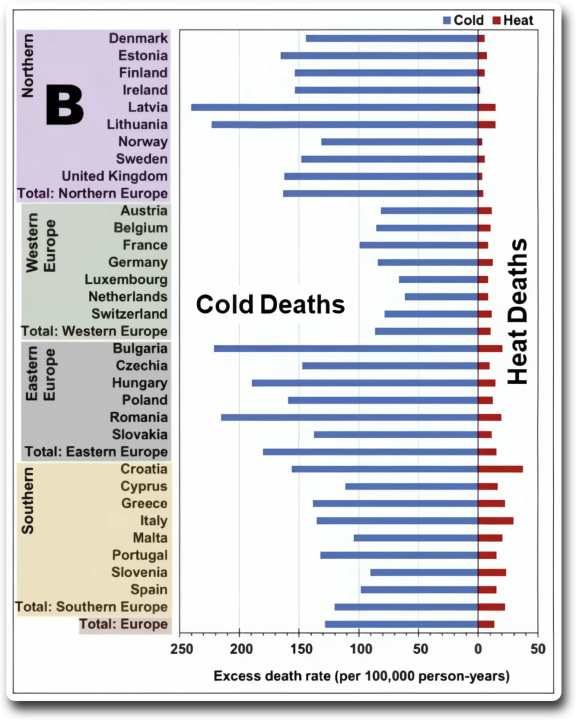 Here’s another analysis of heat vs. cold … it says that global warming is saving 160,000 lives per year through fewer cold deaths.