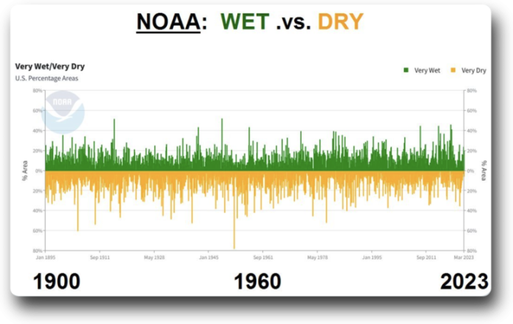 Nor are the extremes in the amount of moisture (droughts, floods) increasing in the US.