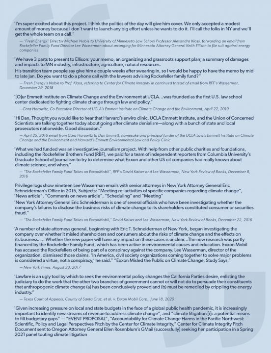 Scanned the linked doc. WUWT cited in footnotes #83. Documents the link between activism of Rockefeller Family and Bloomberg activism non-profits, with state governments and University law schools. Might be harder to show links between schools of law and the departments involved with climate advocacy in those and other Univerities, I didn’t catch much of that in the scan.