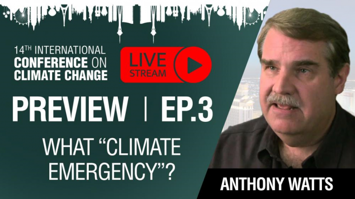In our third in this series, join us LIVE on YouTube Thursday, June 3 at 4:00 p.m. ET (3:00 p.m. CT) as Heartland Institute Senior Fellow Anthony Watts, publisher of the Watts Up With That site, gives a sneak peek of his Las Vegas presentation. In this preview, Watts will discuss the “Climate Emergency” presented by climate activists.