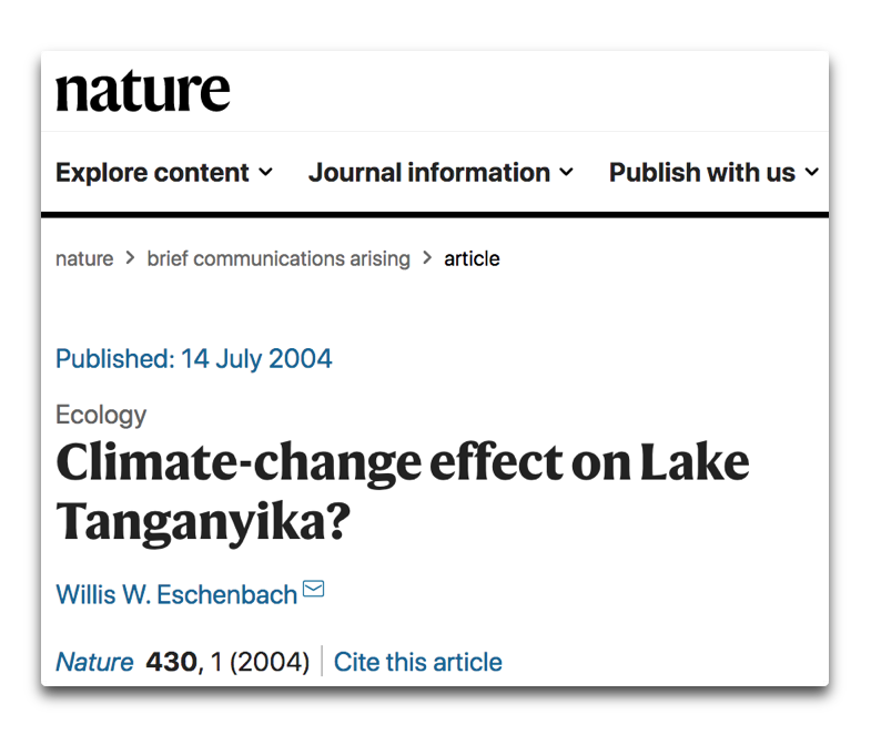 And guess what? Further scientific research on Lake Tanganyika showed I was correct.