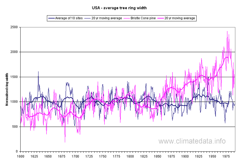 Incidentally here is a graph of Bristle Cone cores compared to other US samples: