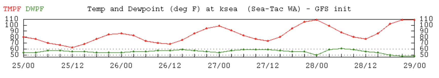 The UW high-resolution forecast system is going for 110F in Seattle and 120F in Portland (see below). Simply mind-boggling