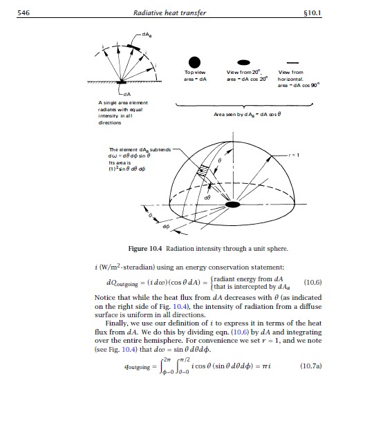 Heat is radiated in all directions at once via a spherical EM wave that has a certain power density or flux. The picture is from a textbook online, “A Heat Transfer Textbook, by John H Lienhard IV and John H Lienhard V. It is available online.