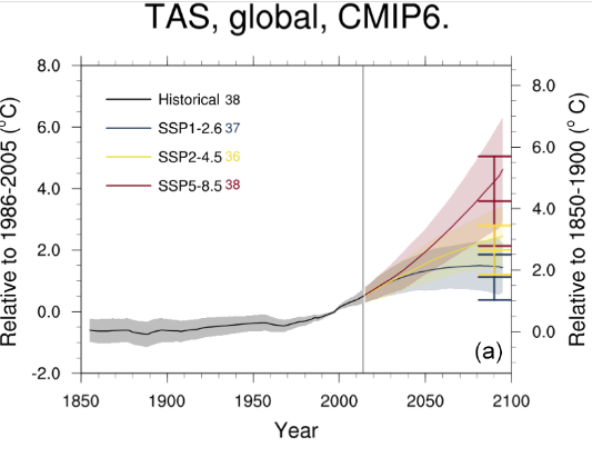 This CMIP6 figure illustrates clearly why holding firmly on to 8.5 as a reference scenario vs 4.5 is appealing for purposes of advocacy/messaging