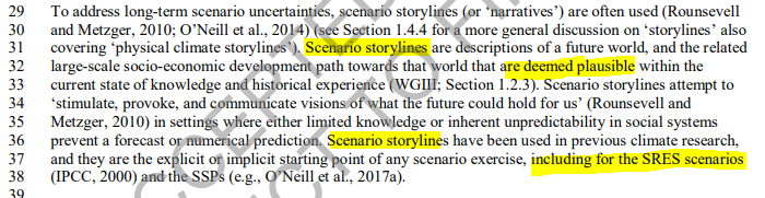I won’t get down too far in the weeds but the IPCC WG1 has returned to the SRES storyline approach