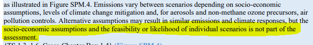 “the socio-economic assumptions and the feasibility or likelihood of individual scenarios is not part of the assessment”
