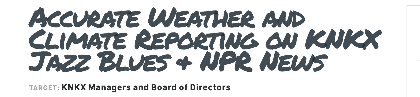 I experienced this myself at KNKX. A local climate “justice” group 350Seattle was unhappy with my discussion of climate (peer-reviewed material by the way) and started a petition to get me kicked off the station. The management of the station, unwilling to defend science or freedom of speech, rapidly surrendered to the activists, agreeing to have my science evaluated–and even appointed one of the group’s members to oversee it.