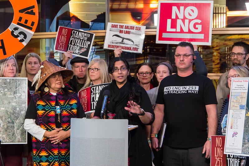 Much of the marine traffic in Puget Sound uses dirty bunker fuel or diesel, which produces substantial particle pollution that is potentially harmful to local residents. An alternative exists: Liquid Natural Gas (LNG), which not only burns much cleaner but also puts less greenhouse gas pollution into the atmosphere. Furthermore, bunker oil and diesel can spill when ships dock at the fueling barges. Puget Sound Energy (PSE) is planning a LNG terminal in Tacoma to help clean the air and reduce global warming, but a number of local climate activist groups (e.g., 350Seattle) and politicians (e.g., our Governor) are opposing the facility because it involves a fossil fuel.