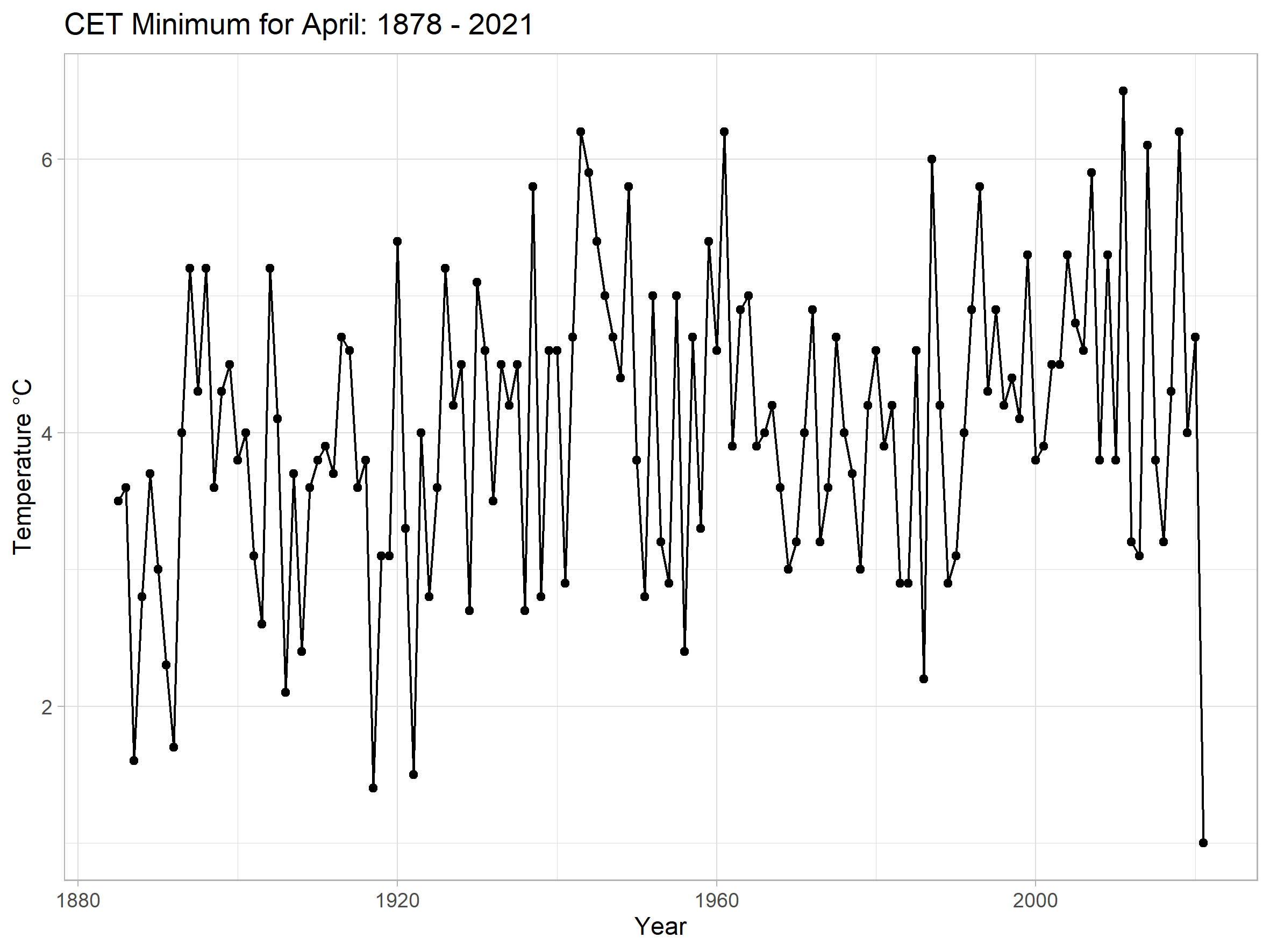 In fact the warmer middle part of April was similar, Tmin was below average then.