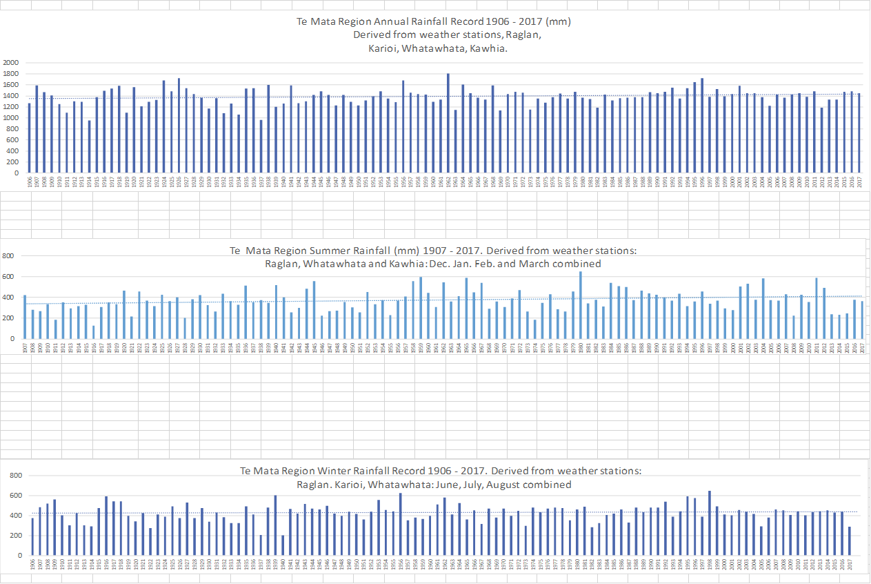 This, from my own neck of the woods in NZ. Hope you can read it. It needs an update, but you get the gist. It put some of the local alarmists to bed, for a while at least. Here, very extreme rainfall events are very localised – sometimes less than 1 km in diameter. 5″ in one hr have been recorded. High rainfall events and flooding are very seldom unprecedented. We know this from the records and the stories from Old-timers.