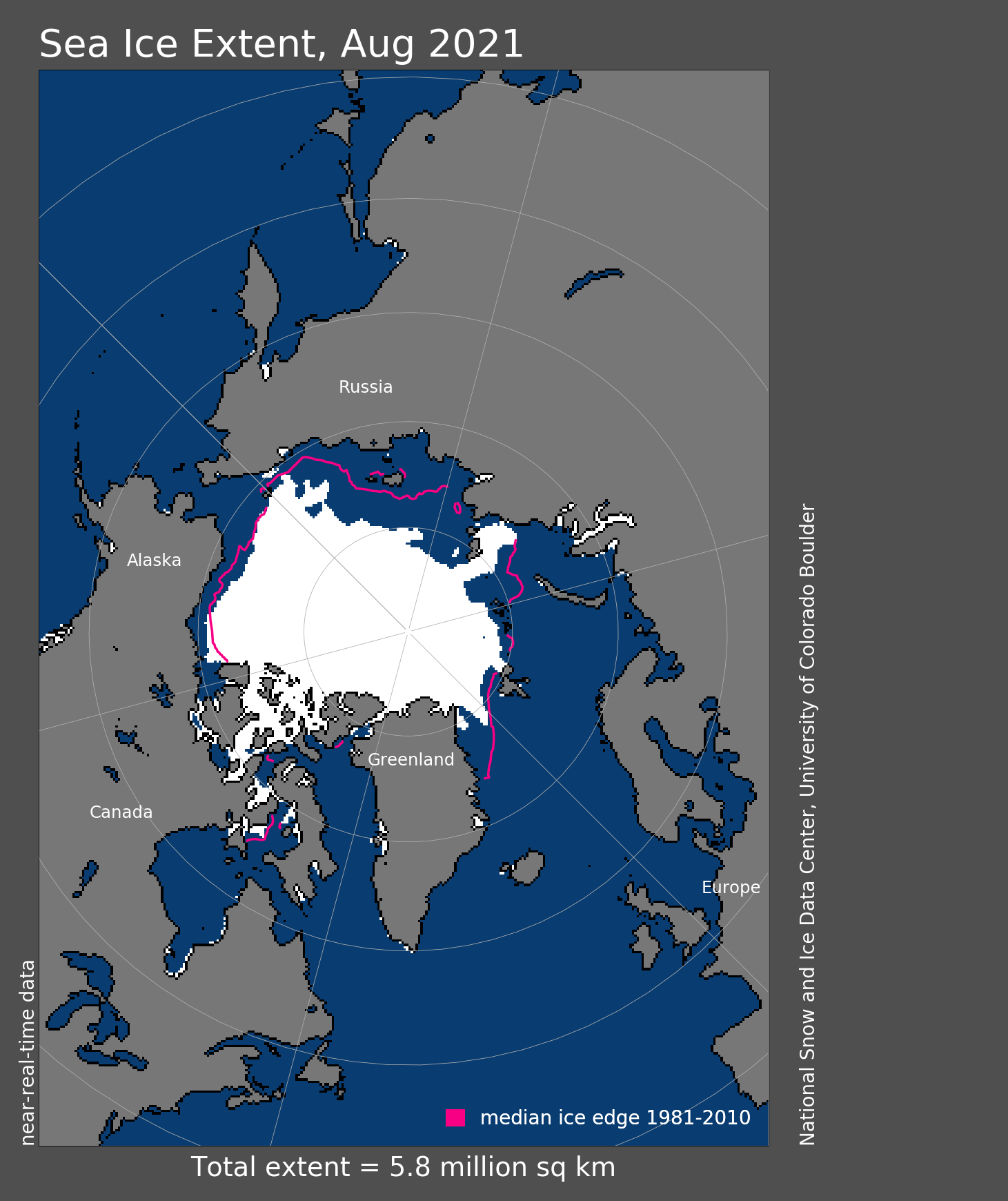 3 years later the monthly average extent for August 2021 is 5.75 million square kilometres (2.22 million square miles).