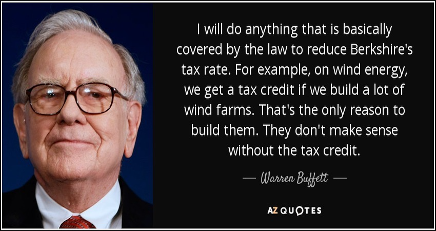 Didn’t investment guru Warren Buffet say the only reason to invest in wind or solar farms was for the tax breaks and the subsidies?