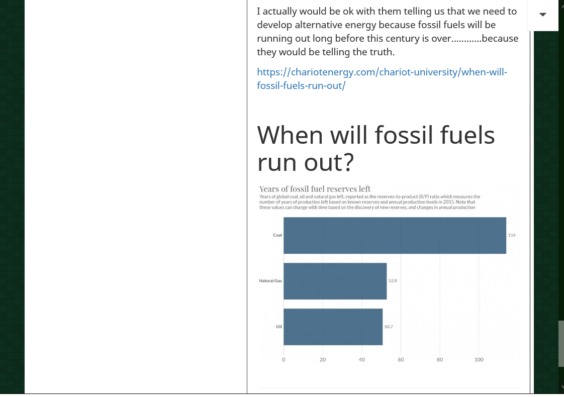 This should have been the first link in that last post. Graphic showing when fossil fuels will run out.
