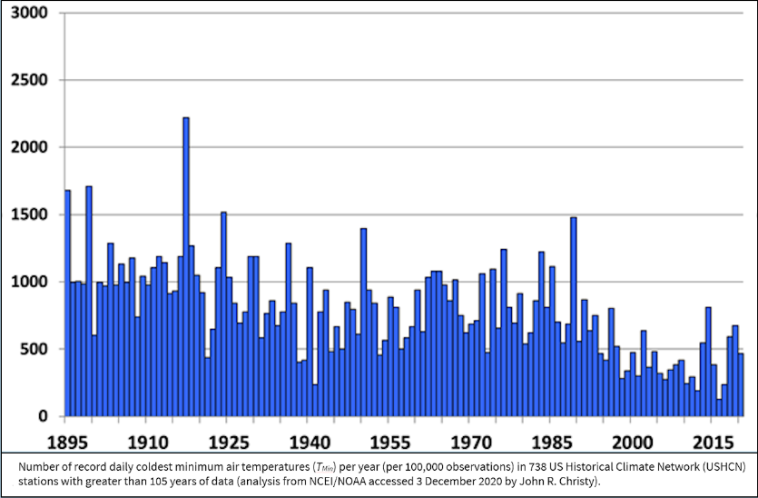 This is absolutely pivotal, warming is an increase in average temperature driven by warmer minimum temperatures. It is NOT hotter, it is LESS cold.